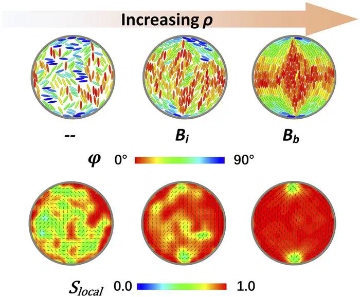 Normally, defects in two-dimensional, circular, confined liquid crystals can be classified into four types based on the position of singularities formed by liquid crystal molecules, i.e., the singularities located inside the circle, at the boundary, outside the circle, and outside the circle at infinity. However, it is considered difficult for small aspect ratio liquid crystals to generate all these four types of defects. In this study, we use molecular dynamics simulation to investigate the defect formed in Gay–Berne, ellipsoidal liquid crystals, with small aspect ratios confined in a circular cavity. As expected, we only find two types of defects (inside the circle and at the boundary) in circular, confined, Gay–Berne ellipsoids under static conditions at various densities, aspect ratios, and interactions between the wall and liquid crystals. However, when introducing an external field to the system, four types of defects can be observed. With increasing the strength of the external field, the singularities in the circular, confined system change from the inside to the boundary and the outside, and the farthest position that the singularities can reach depends on the strength of the external field. We further introduce an alternating, triangular wave, external field to the system to check if we can observe the transformation of different defects within an oscillating period. We find that the position of the singularities greatly depends on the oscillating intensity and oscillating period. By changing the oscillating intensity and oscillating period of the external field, the defect types can be adjusted, and the transformation between different defects can be easily observed. This provides a feasible way to modulate liquid crystal defects and investigate the transformation between different defects.
