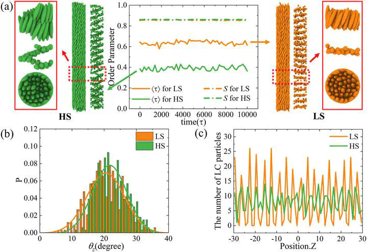 Confined liquid crystals (LCs) exhibit complex and intriguing structures, which are fascinating fundamental problems in soft matter. The helical structure of cylindrical cavities is of great importance in LC studies, particularly for their application in optical devices. In this study, we employ molecular dynamics simulations to explore the behavior of achiral smectic-B LCs confined in narrow cylindrical cavities, where geometric frustration plays an important role. By increasing the cylinder size, LCs exhibit a transition from multi-helical to layered structures. Notably, we observe two stable structures, namely the helical structure and the layered structure, at moderate cylinder size. We also investigate the effects of the arrangement of cylindrical wall particles (hexagonal or square array) and anchoring strength on the LC structure. Our findings reveal that both the hexagonal array and strong anchoring strength promote the formation of helical structures. Our study provides novel insights into the confinement physics of LCs and highlights the potential for achieving helical structures in achiral LCs, which will expand the future applications of LCs.
