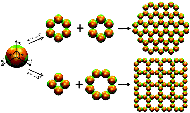 The design and discovery of new two-dimensional materials with desired structures and properties are always one of the most fundamental goals in materials science. Here we present an atom-mimicking design concept to achieve direct self-assembly of two-dimensional low-coordinated open lattices using three-dimensional patchy particle systems. Besides honeycomb lattices, a new type of two-dimensional square-octagon lattice is obtained through rational design of the patch configuration of soft three-patch particles. However, unexpectedly the building blocks with thermodynamically favoured patch configuration cannot form square-octagon lattices in our simulations. We further reveal the kinetic mechanisms controlling the formation of the honeycomb and square-octagon lattices. The results indicate that the kinetically favoured intermediates play a critical role in determining the structure of obtained open lattices. This kinetics-controlled design principle provides a particularly effective and extendable framework to construct other novel open lattice structures.
