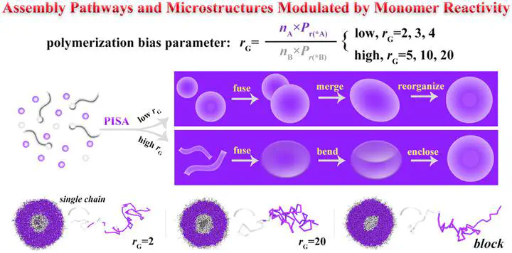 Polymerization-induced self-assembly (PISA) offers a versatile platform for designing polymeric nanoparticles. Amphiphilic gradient copolymers, characterized by a gradual transition from hydrophilic to hydrophobic segments, exhibit reduced interfacial tension and enhanced stimulus responsiveness. However, the interplay between polymerization and self-assembly in PISA, influenced by the monomer feed ratio and reactivity, remains ambiguous. Herein, we employ coarse-grained simulations to investigate the role of the effective polymerization bias between monomers. Our results reveal that the relative monomer reactivity plays a key role in determining both the copolymer sequence and the vesicle formation pathway. At low reactivity differences, comparable monomer reactivities facilitate a cooperative polymerization-assembly process that produces numerous small spherical assemblies, which subsequently merge and reorganize into vesicles. In contrast, high reactivity asymmetry favors the formation of anisotropic worm-like micelles that progressively fuse, bend, and enclose into vesicular structures. Microstructural analysis further shows that gradient copolymer vesicles possess internal cavities larger than those formed from block copolymers. These insights provide guidance for tailoring vesicle formation pathways and fine-tuning microstructures for potential applications in drug delivery and materials science.